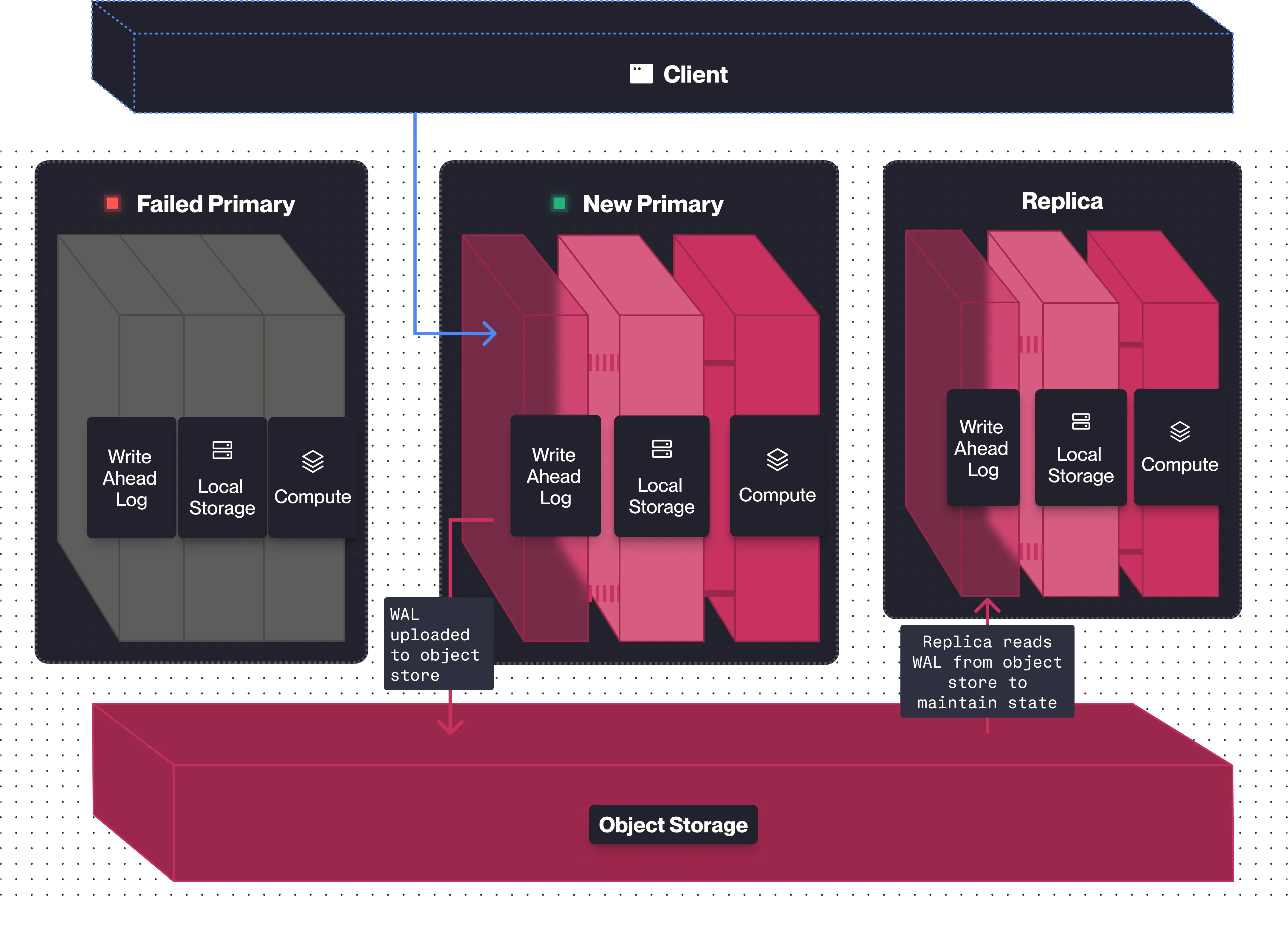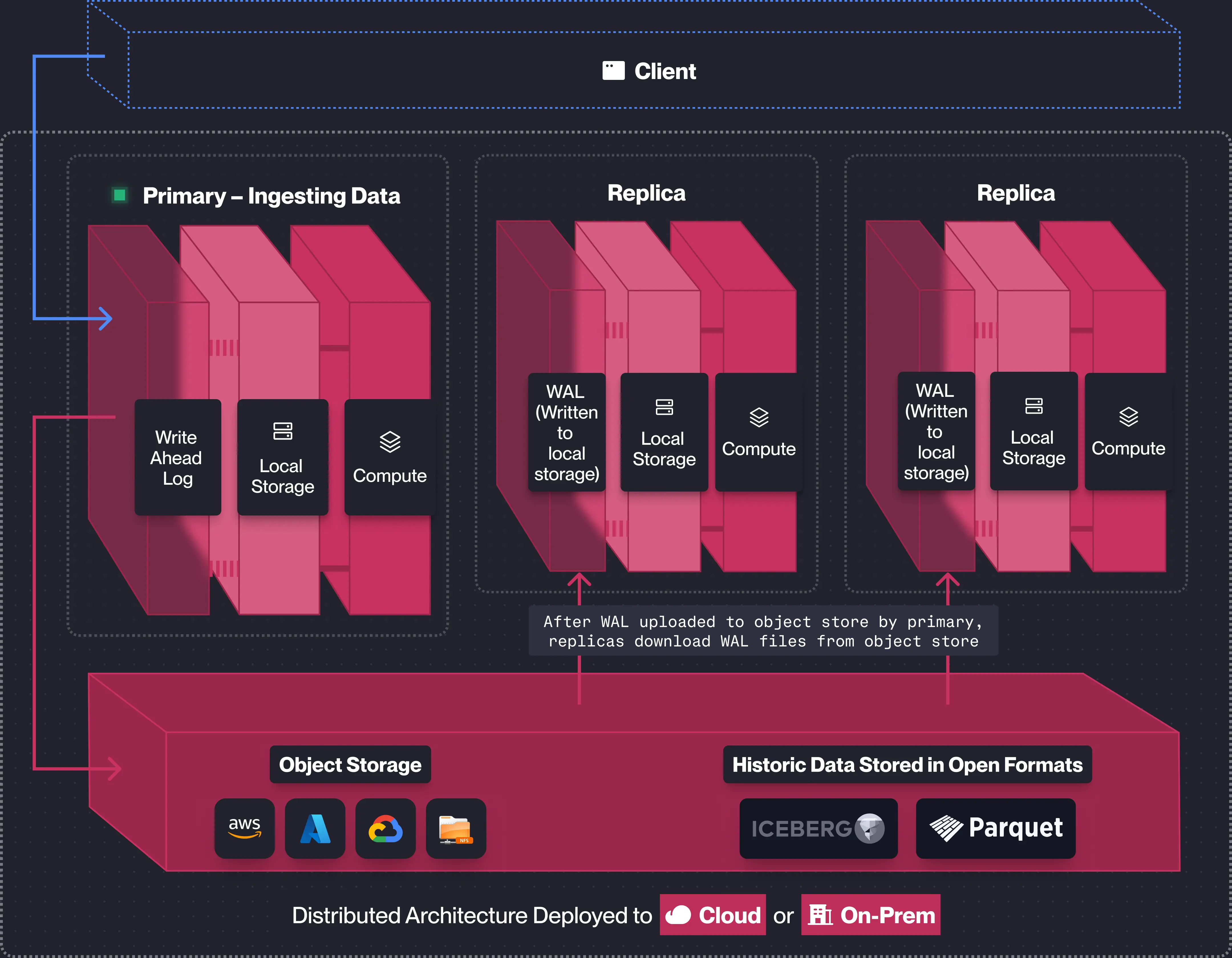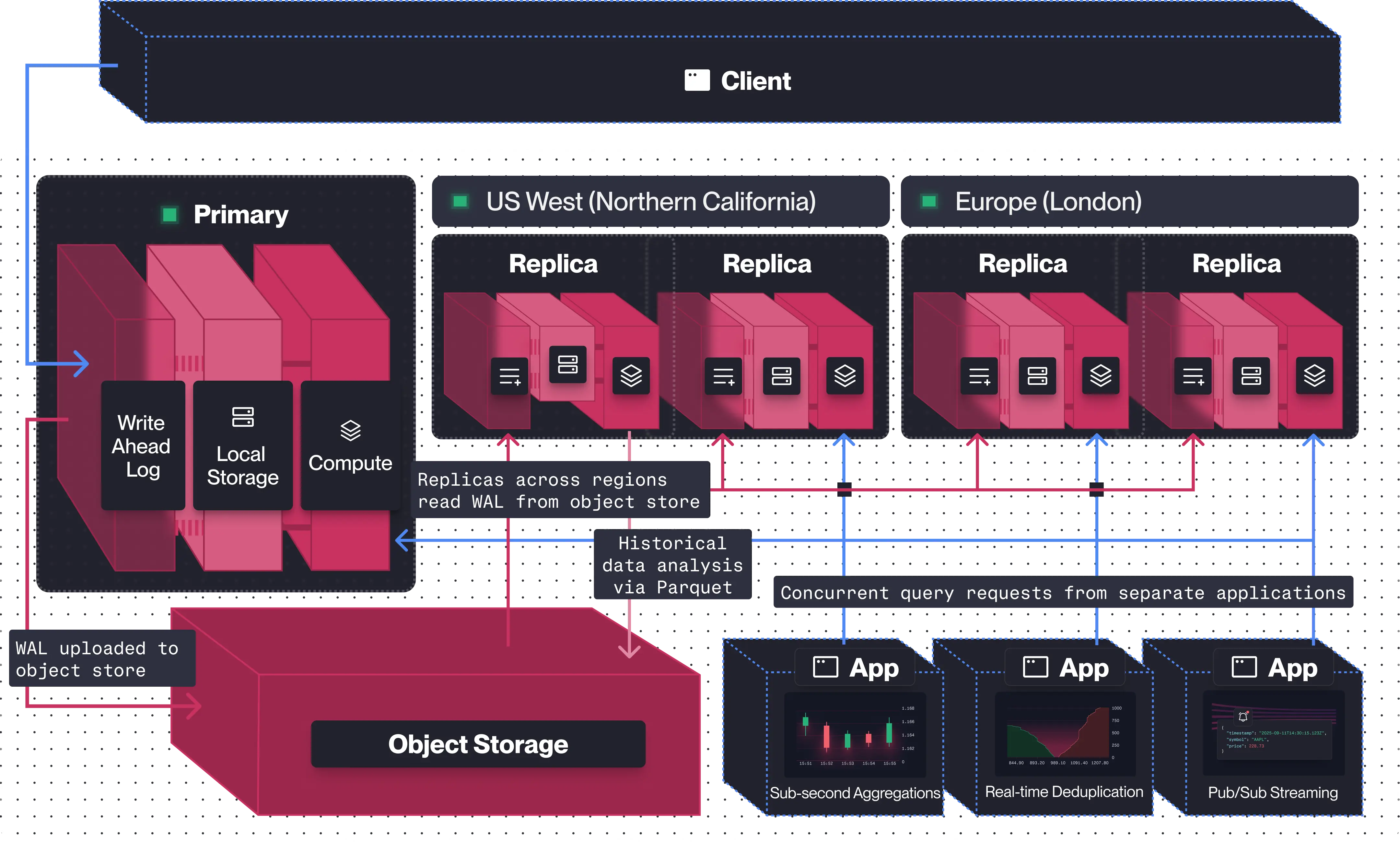 Incoming data is appended to the write-ahead log (WAL) with ultra-low latency. Writes are made durable before any processing, preserving order and surviving failures without data loss. The WAL is asynchronously shipped to object storage, so new replicas can bootstrap quickly and read the same history.